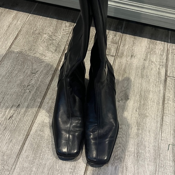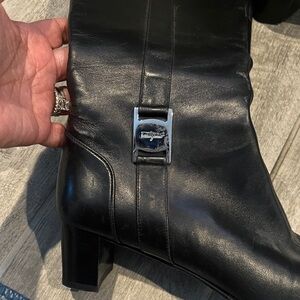 Salvatore Ferragamo Black Leather Square Toe Designer Boots size 7 1/2