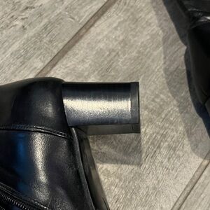 Elegant black leather tall boots with a sleek buckle design. Zipper closure. Ideal for adding a touch of sophistication. In excellent clean condition, barely used