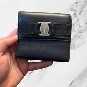 Salvatore Ferragamo Black Leather Vara Bow Bifold Wallet