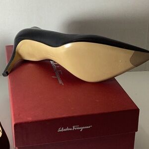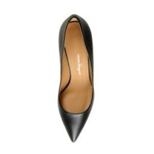 Feminine and glam with a touch of grit, this new Ferragamo pump is cut from the finest suede, with a pointed tip and squared neck to echo its contemporary sensuality. The 7cm heel is just the right height for day to night looks, with a double Gancio above it for an iconic finish. A golden F is placed under the sole.