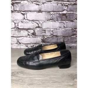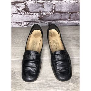 Salvatore Ferragamo Black Leather Logo Slip On Loafer Shoes Women’s 6B US/36.5EU