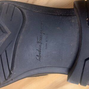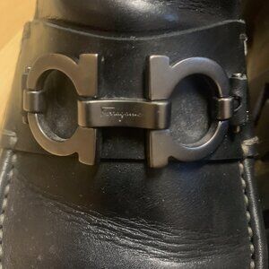 Elegant black leather loafers. Signature metal buckle detail. Slip-on style for easy wear.