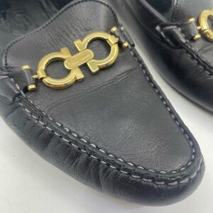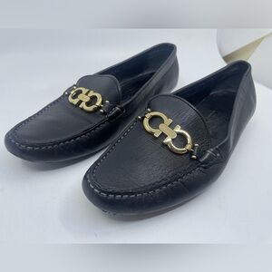 Salvatore Ferragamo Black Loafers with Gold Accent