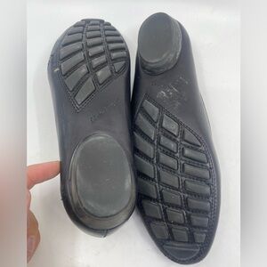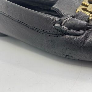 Elegant black loafers with signature gold hardware. Sleek and stylish design. Perfect for any occasion.