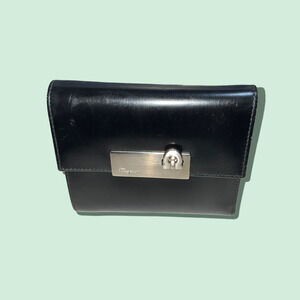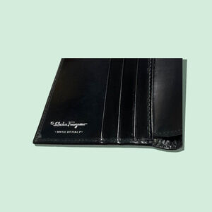 Salvatore Ferragamo Black Patent Leather Bifold Wallet.