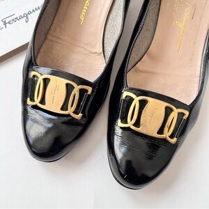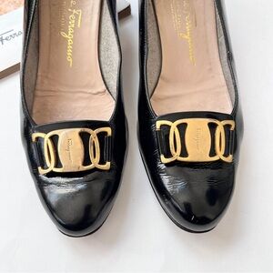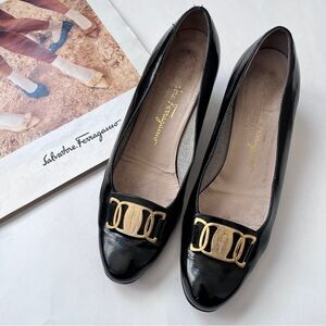 Salvatore Ferragamo Black Patent Leather Low Heel Pumps Size 8 C