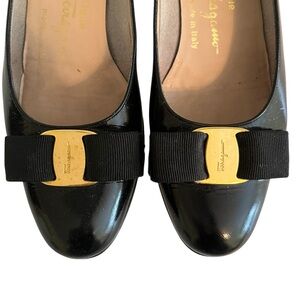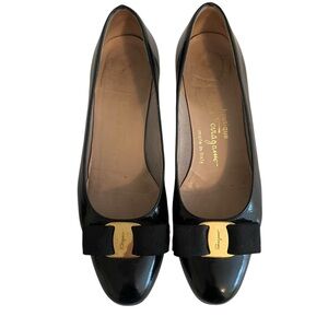 Salvatore Ferragamo Black Patent Leather"Vara" Pump 6.5