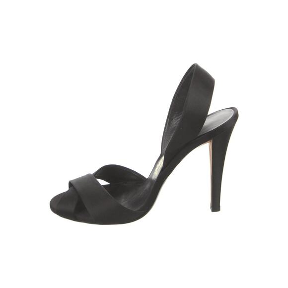 Salvatore Ferragamo Black Satin Slingback Open Toe Heels Sandals Size 7.5