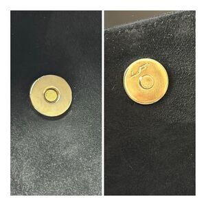 Monogramed inside zip pull to inside closure, gold shoulder buckle and magnetic closure