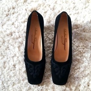 Salvatore Ferragamo Black Suede Shoes Size 7AA