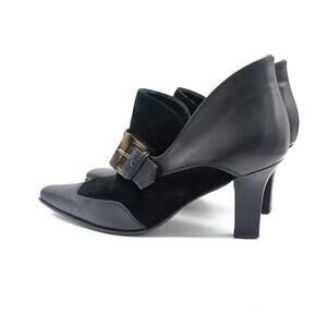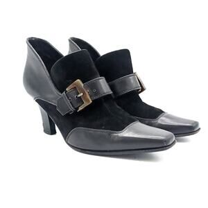 Salvatore Ferragamo Black Suede Square Toe Buckle Booties | Italy Vintage Shoes