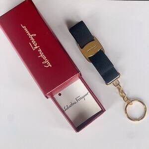 Salvatore Ferragamo Black Vara Bow Gold Keychain