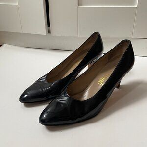 Salvatore Ferragamo || Black Vintage Patent Leather Closed Toe Heels Pumps 9.5