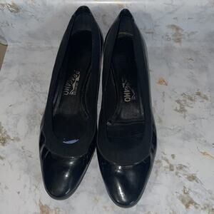 Salvatore Ferragamo Black Patent Leather Nuria Pumps