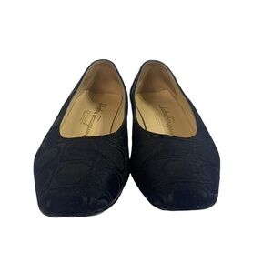- Salvatore Ferragamo Black Woven Fabric Allover Logo Embossed Pumps 8 AA