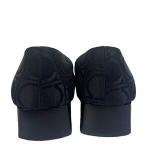 Salvatore Ferragamo Black Fabric All Over Logo Embossed Pumps 8 AA