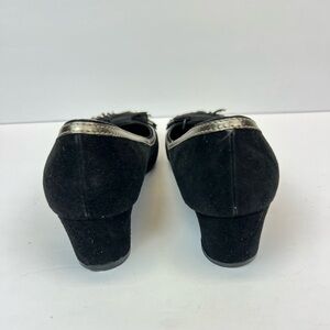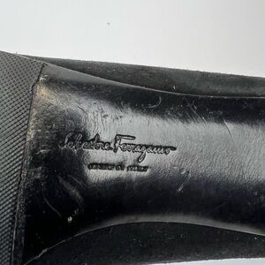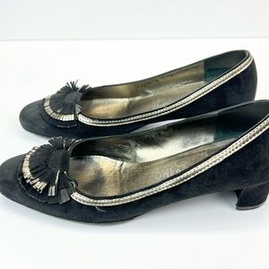 Salvatore Ferragamo Black and Gold Flats with Decorative Toe Size 9 Suede