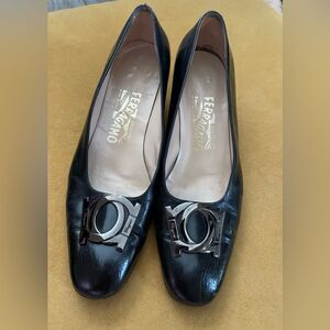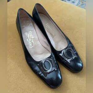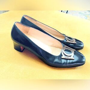 Salvatore Ferragamo Block Heel Pump Silver Hardware 8.5B