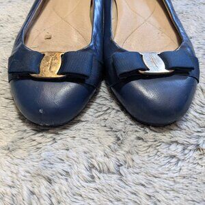 Salvatore Ferragamo Blue Ballet Flats Varina Leather Bow EU 40 US 10