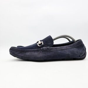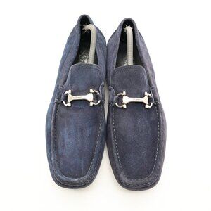 Salvatore Ferragamo Blue Navy Suede Loafers Men's Size 12 D Slip On Casual Shoes