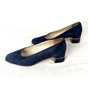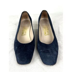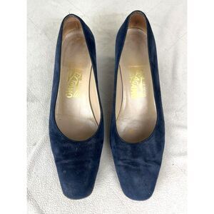Salvatore Ferragamo Blue Suede Kitten Heel Slip On Shoes Women's Size 8
