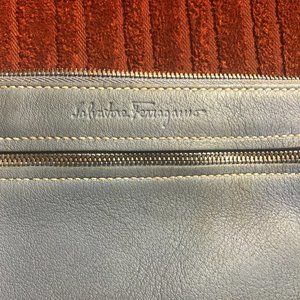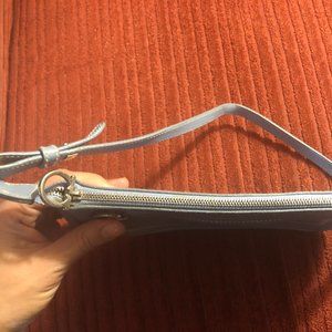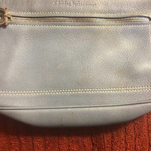 This is a gorgeous leather clutch with top zip and an extra front pocket. It does have some light and not obvious wear, pictured in photos. Perfect for a date!