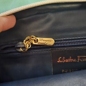 Salvatore Ferragamo Blue and White Shoulder Bag with Luxurious Design