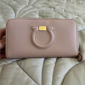 Chic Salvatore Ferragamo wallet in blush pink. Features signature logo detail. Perfect for everyday elegance.