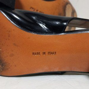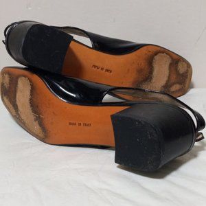 Salvatore Ferragamo Boutique Leather Slingback Block Heel Shoes Black Sz 8.5 3A