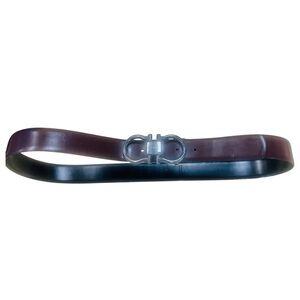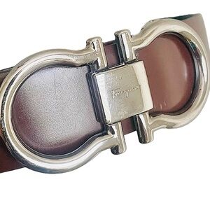 Salvatore Ferragamo Brown & Black Reversible Leather Belt Silver Gancini Buckle