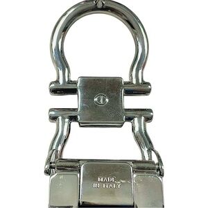 Ferragamo brings this stylish brown and black reversible leather belt, featuring a sleek silver signature Gancini buckle. Perfect for any outfit. Size not know, however measures 103/40. Condition is fair as there are a few scratches on hardware - this fine leather also shows minor creasing. Smoke-free environment. Made in Italy.