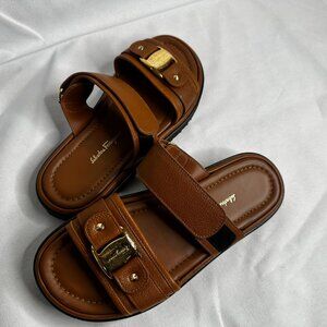 Salvatore Ferragamo - Brown Camel Leather - Sandals - Size 8 - Never worn