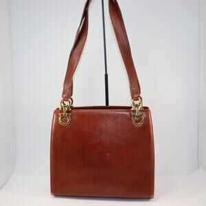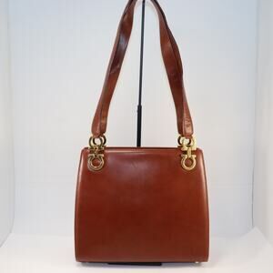 Salvatore Ferragamo Brown Leather Gancini Shoulder Bag Vintage Italy