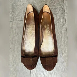 Salvatore Ferragamo Brown Suede Bow Front Ballerina Flats Size 11