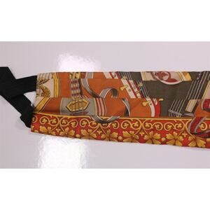 Salvatore Ferragamo Brown/Red Musical Instruments Silk Cummerbund