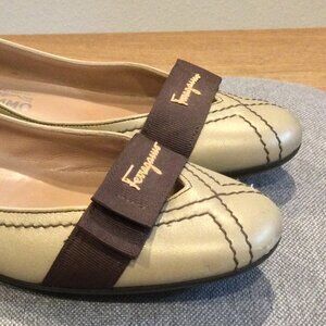 Salvatore Ferragamo Buyme Metallic Taupe Flat Women’s Shoes 6