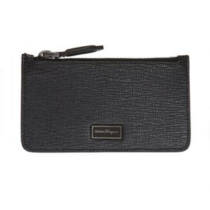 For a small wallet that you can slip into your pocket for easy access, this slim design is ideal for all situations! Equipped with a zipped pouch to keep coins and bills along with 5 card slots. Compact design. This wallet is made of durable pebbled leather and dawns a dark, signature Ferragamo logo accent.