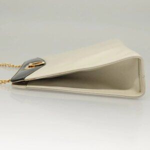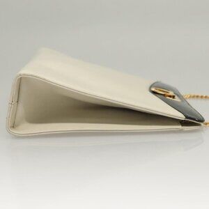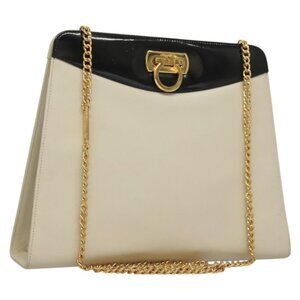 Salvatore Ferragamo Chain Gancini Shoulder Bag Leather White Gold Auth
