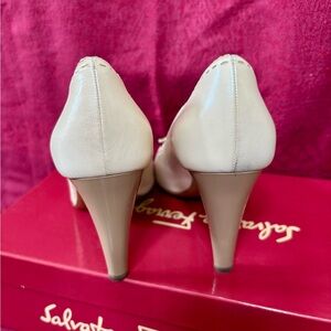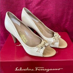 Salvatore Ferragamo Cream Peep-Toe Heels with Bow