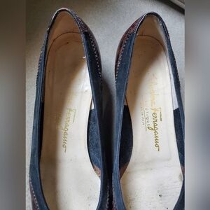 Salvatore Ferragamo Croc Embossed Leather & Suede Pumps Heels Size 7.5
