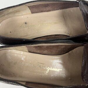 Salvatore Ferragamo Crocodile Print Brown Low Heel GOLD Buckle Loafers Sz 7.5 B