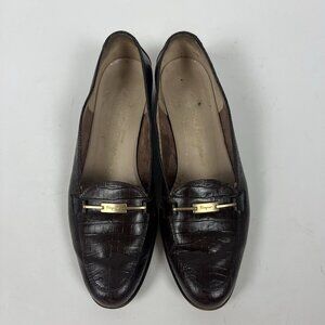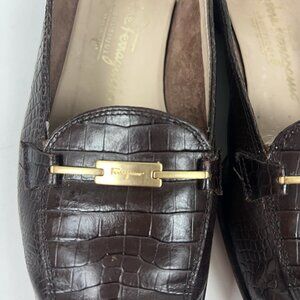 Salvatore Ferragamo Crocodile Print Brown Low Heel GOLD Buckle Loafers Sz 7.5 B