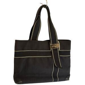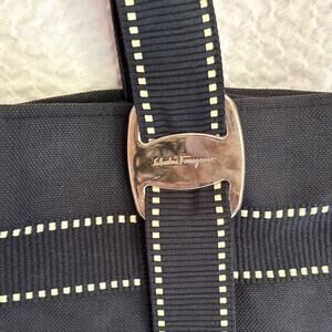 Salvatore Ferragamo Dark Navy Canvas and Leather Tote with Silver Hardware