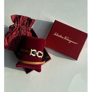 Salvatore Ferragamo Double Gancini Bracelet Brown Leather Gold Tone