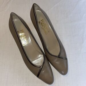 Salvatore Ferragamo Dress Pumps Women’s Size 9 AA Khaki Leather Slip On Heels