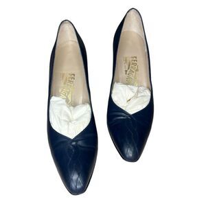 Women’s Size 8 Salvatore Ferragamo Extra Narrow Navy Blue Leather Pumps