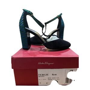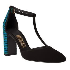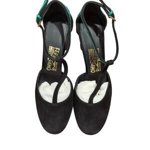 Salvatore Ferragamo “Fergie” Black Suede T-Strap Pumps sz. 7us