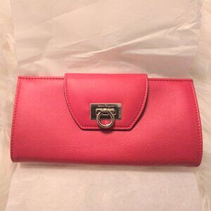 Salvatore Ferragamo Fiamma Calf Leather Gancini Long Wallet Red XE0229-004