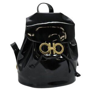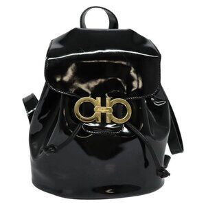 Salvatore Ferragamo Gancini Backpack Enamel Black Silver Auth