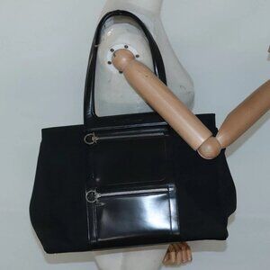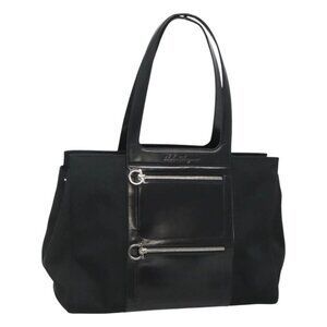 Salvatore Ferragamo Gancini Bag Canvas Leather Black Silver Auth bs24678